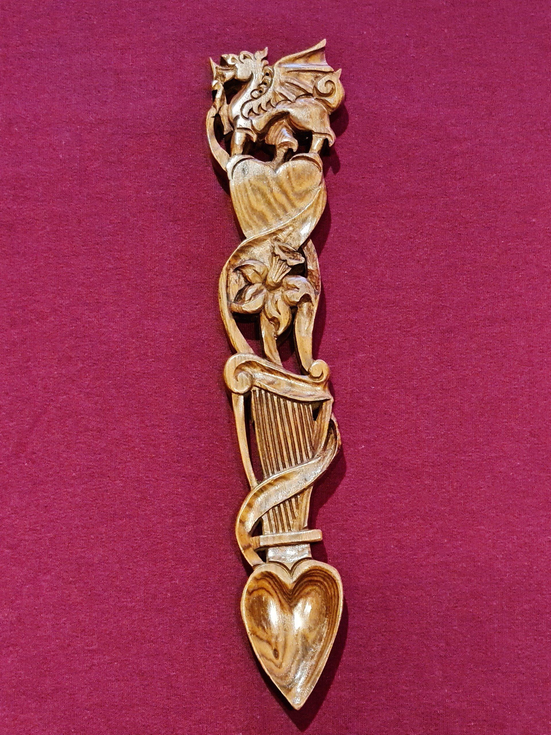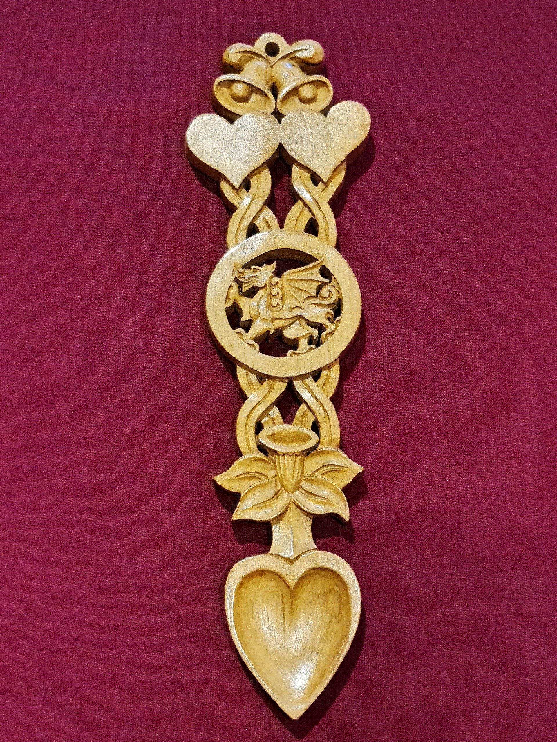 These days lovespoons are given as a special gift with a touch of love from Wales. We offer an extensive range of carved lovespoons suitable for many occasions, including weddings, anniversaries and birthdays. Space allowing, we can personalise your wooden lovespoon to make your gift even more special. All spoons are sent in a presentation box which carries the legend of the lovespoon and a list of traditional meanings.