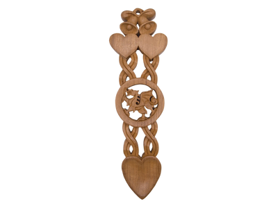 This traditional Welsh love spoon features four carved hearts arranged in perfect balance, symbolising deep affection, unity and enduring love. The repeating heart motif represents a strong emotional bond and lasting commitment, making this design timeless and meaningful.